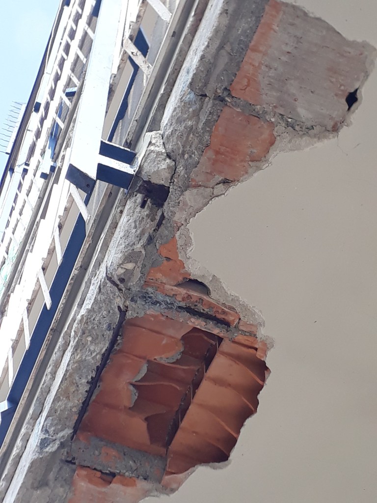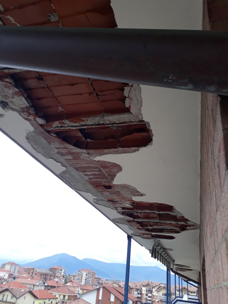Intervento di manutenzione straordinaria di messa in sicurezza dal rischio sfondellamento e distacco intonaco dei solai del balcone. Ripristino delle situazioni di degrado tramite malte ed intonaci.