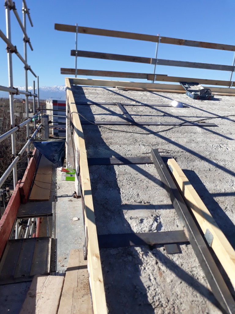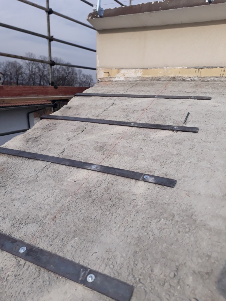 Intervento di consolidamento strutturale del tetto con elementi in acciaio e successiva sostituzione del manto di copertura, con inserimento delle linee vita.