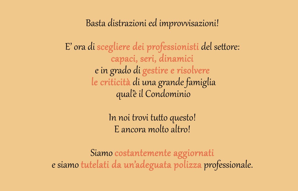 La serenità dei condomini è anche la nostra serenità!
